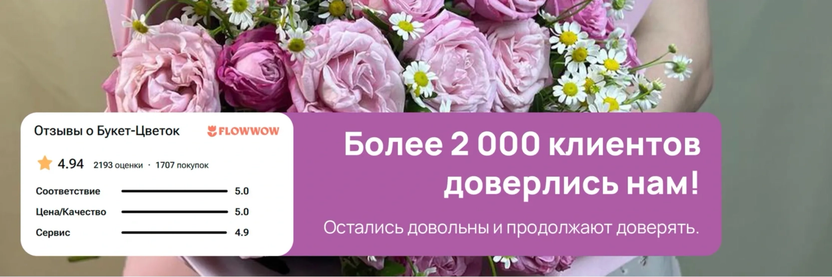 В нашем онлайн-магазине "Букет-Цветок" вы можете купить букеты из разных цветов: ромашки, розы, хризантемы, альстромерии, герберы, орхидеи, гортензии и многие другие. У нас доступны как готовые букеты, так и возможность собрать букет из отдельных цветов по вашему усмотрению. Мы осуществляем доставку по Москве и Люберцам, гарантируя свежесть и качество цветов. Подарите букет своей маме в день рождения, любимой девушке, коллеге на юбилей или просто без повода, это всегда уместно и оставит приятное впечатление. Цветы – отличный выбор для подарка, есть ли повод или просто желание сделать приятное. Порадуйте своих близких и знакомых красивыми цветами, и и настроение оставит незабываемое впечатление и благодарность в виде улыбки.