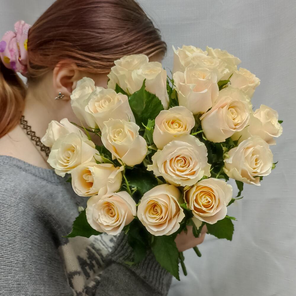 Изысканный букет из 21 кенийской розы сорта Шармант нежно-абрикосового цвета — идеальный подарок для любимой, мамы, подруги или на день рождения. Этот элегантный букет цветов подчеркнет вашу заботу и любовь, создаст праздничную атмосферу и оставит незабываемое впечатление.