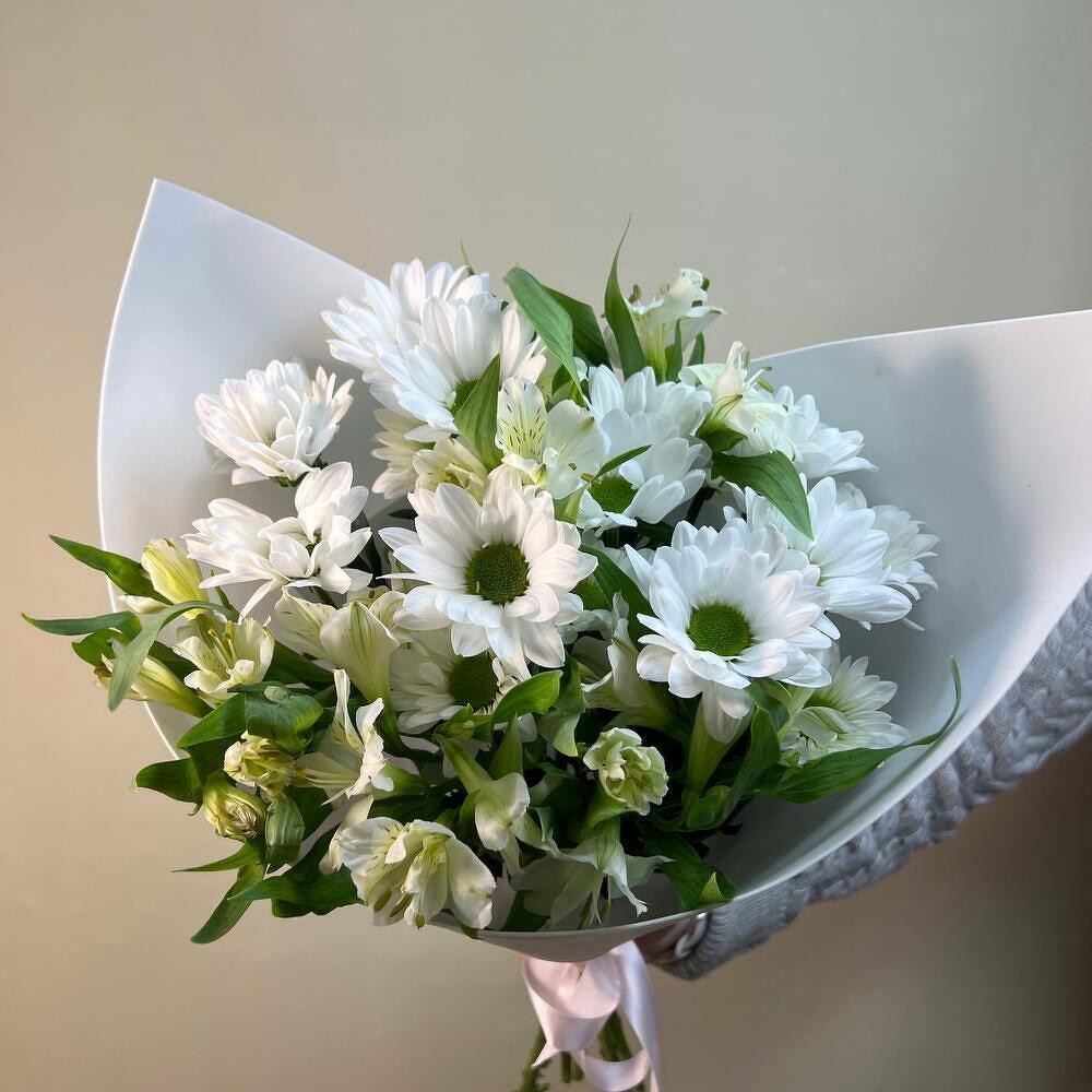 Маленький летний букет от нашего магазина — это прекрасный выбор для тех, кто ценит свежесть природы и хочет порадовать себя или своих близких. Состоящий из кустовых хризантем, ромашек и альстромерии, этот букет воплощает легкость, радость и искренность чувств. Благодаря тщательно подобранному сочетанию цветов, он станет идеальным дополнением к любому интерьеру или отличным самостоятельным презентом.