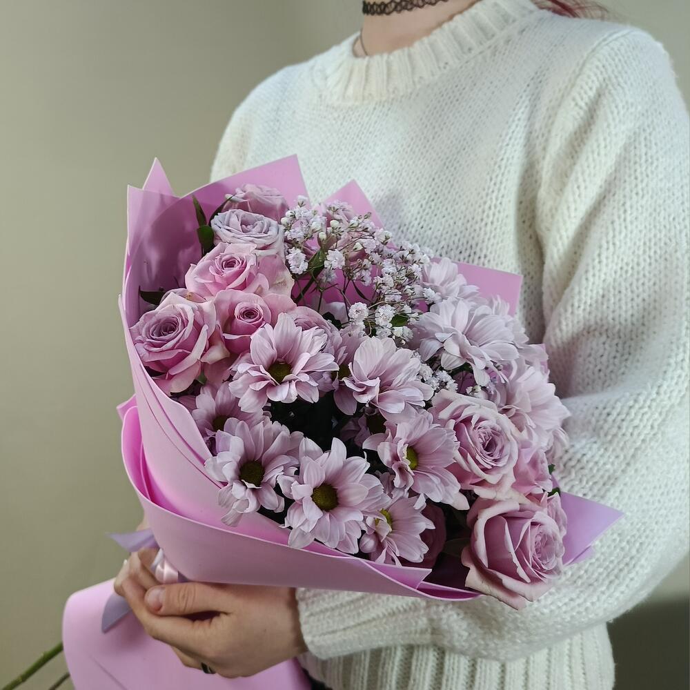 Этот элегантный букет станет прекрасным подарком для вашей девушки, подруги или коллеги как на день рождения, так и на юбилей или свадьбу. Сочетание сиреневого и розового оттенков придает ему особую утонченность и шарм, а каждый цветок несет свою уникальную символику красоты, любви и благодарности. Благодаря профессионализму флористов каждая композиция создается с особым вниманием к деталям, чтобы радовать получательницу долгие дни.